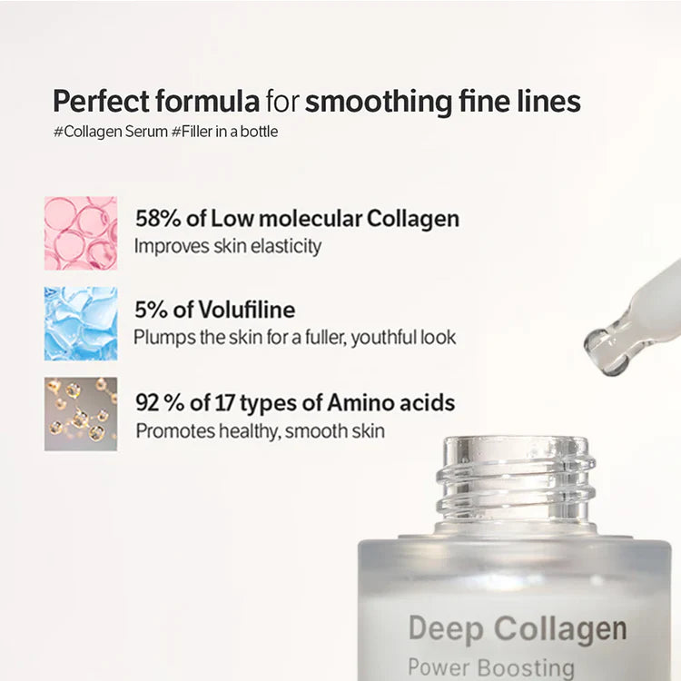 Transform your skin with the Deep Collagen Power Boosting Serum — the ultimate blend of collagen + hydration for firm, plum-p, glass-like skin.